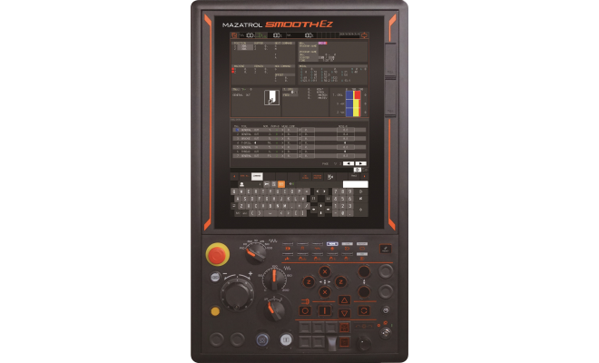 Die SmoothEz ist mit einem 15-Zoll-Touchscreen im Hochformat ausgestattet, der an die Vorlieben des Bedieners angepasst werden kann, sowie mit einer vollständigen QWERTY-Tastatur. Sie bietet Flexibilität, da sie in MAZATROL oder ISO programmiert werden kann.