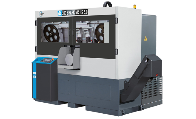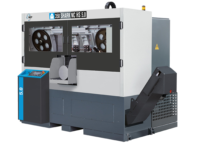 Shark 350 NC HS 5.0 Bandsägevollautomaten mit Zwei-Säulen-Führung für Serienschnitte insbesondere in schwer zerspanbaren Materialien und Vollmaterial.