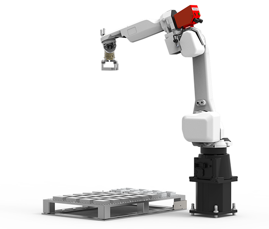 Ein Roboter bietet eine oder mehrere Palettenpositionen an auf denen die Werkstücke positioniert werden. Ein Sicherheitskonzept ist bereits integriert. Die Bedienung erfolgt über einem Industrie-PC.